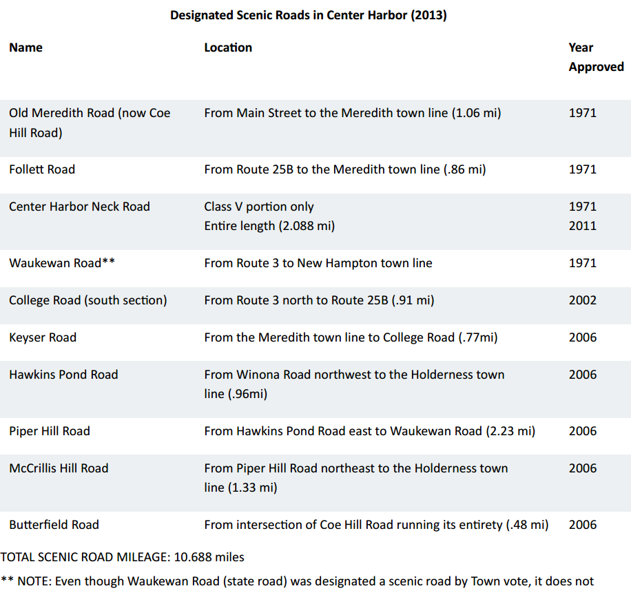 Conservation Commission - Designated Scenic Roads in Center Harbor
